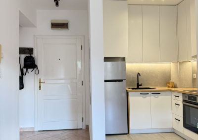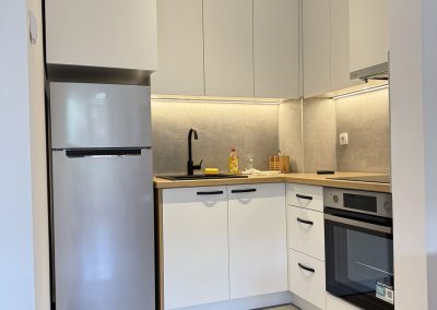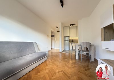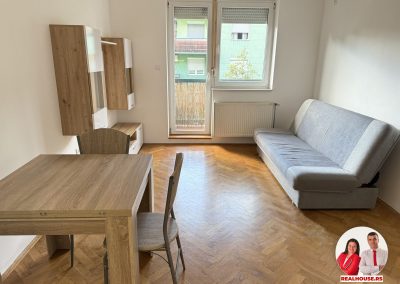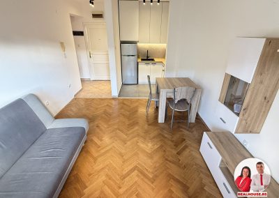 Stan čine mali ulazni hodnik u kome se nalazi jedan manji plakar, zatim dnevna soba sa kuhinjom i trpezariskom delom. U dnevnoj sobi je jedan trosed na razvlačenje, sto za ručavanje i tv komoda. Potpuno nova kuhinja sa novim i ne korištenim frižiderom i šporetom.