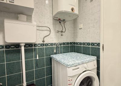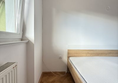 Spavaća soba je sa velikim plakorom i bračnim krevetom na kome je novi dušek, a kupatilo sa ležećom kadom i veš mašinom.