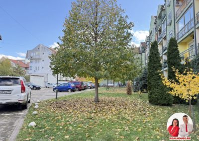 Stan se nalazi u stambenoj zgradi sa liftom, koja ima ogromno sopstveno dvorište sa malim parkom gde možete na klupama popiti kafu, pričuvati dete ali i sa velikim parkingom rezervisanim samo za stanare zgrade.