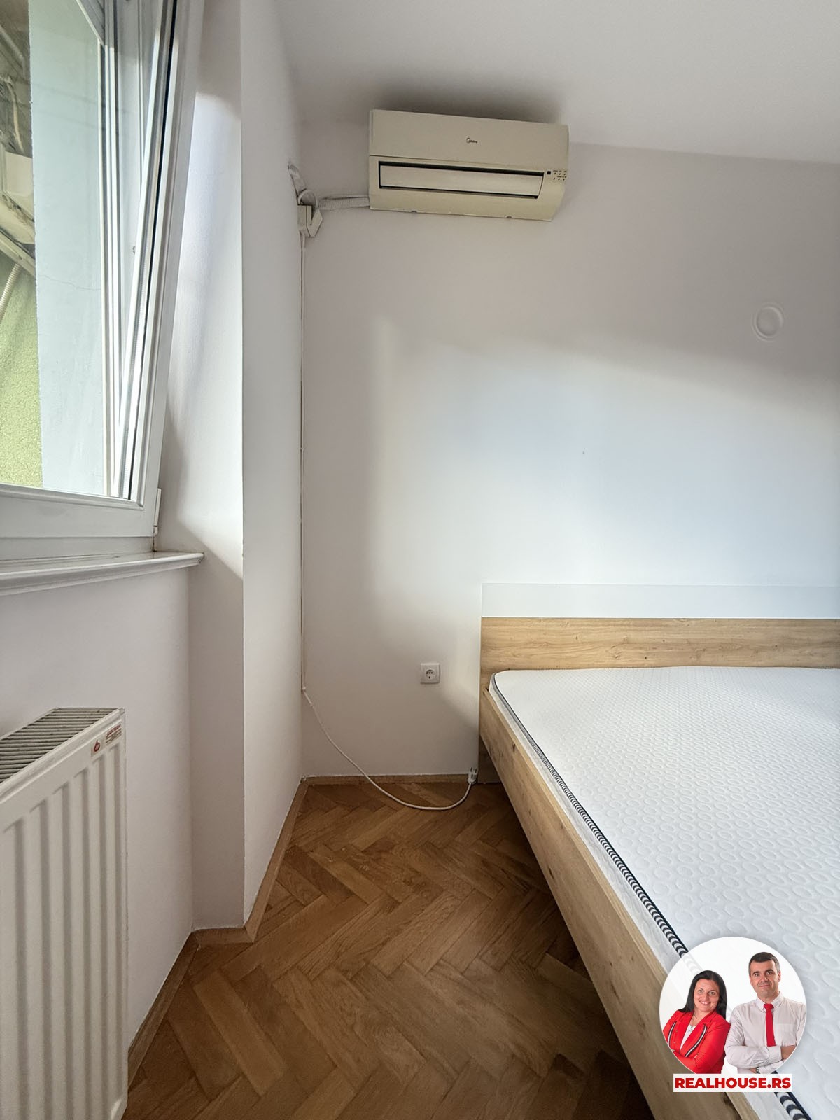 Spavaća soba je sa velikim plakorom i bračnim krevetom na kome je novi dušek, a kupatilo sa ležećom kadom i veš mašinom.