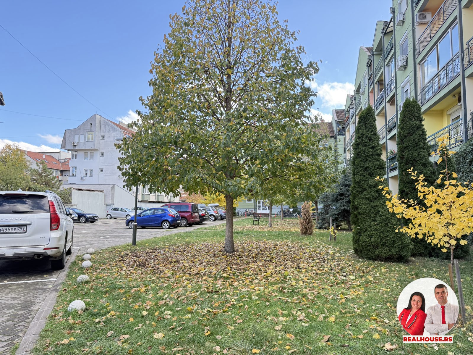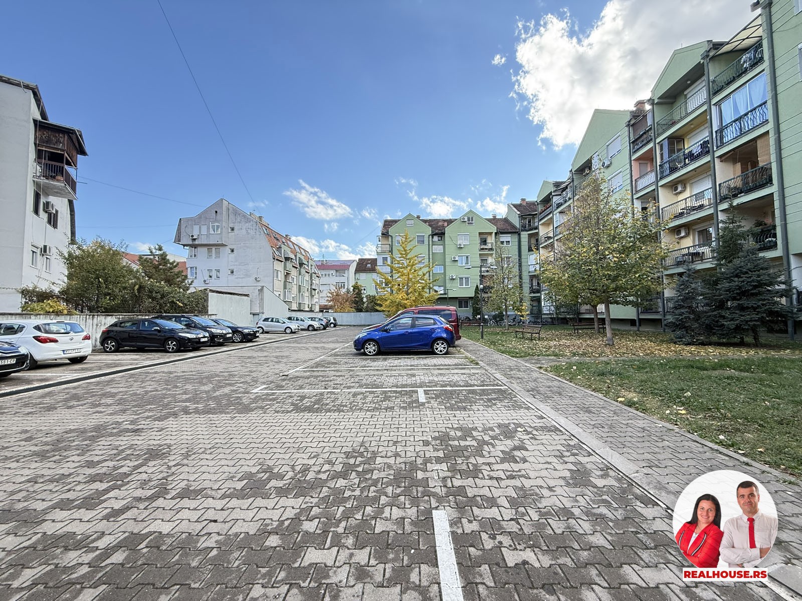 Stan se nalazi u stambenoj zgradi sa liftom, koja ima ogromno sopstveno dvorište sa malim parkom gde možete na klupama popiti kafu, pričuvati dete ali i sa velikim parkingom rezervisanim samo za stanare zgrade.