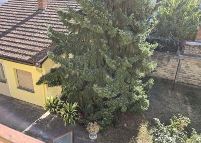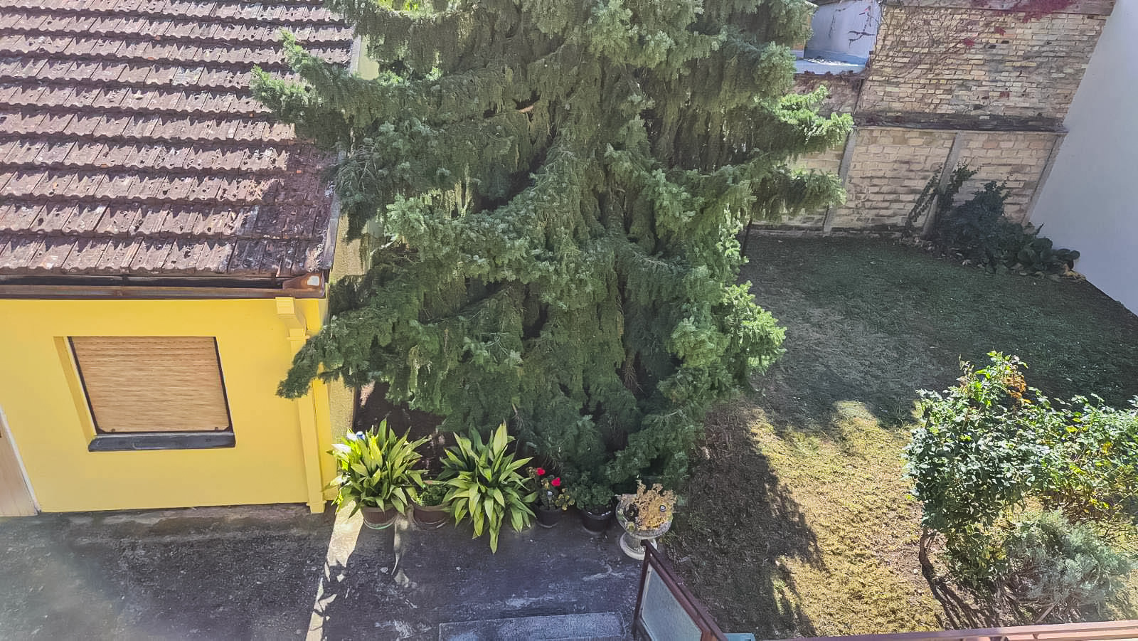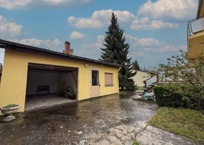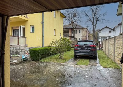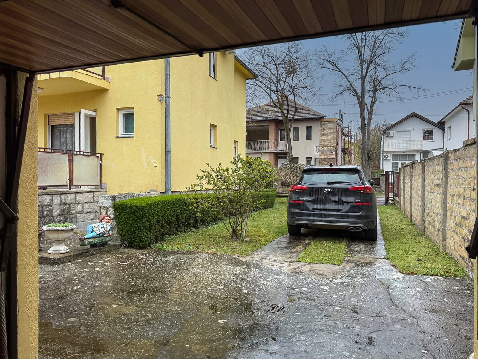 Dvorište je pravo iznenađenje – pažljivo uređeno, “pod konac”, sa ukrasnim drvećem, borom i travnatim delom taman tolikim koliko treba.  U njemu se nalazi i pomoćni objekat od 43 m², koji funkcioniše kao garsonjera sa kupatilom i garažom. Potpuno odvojena celina nudi bezbroj mogućnosti: može služiti za izdavanje, rad od kuće, goste ili kao stambeni prostor za članove porodice. Sve je uređeno, funkcionalno i spremno za život – dovoljno prostrano za igru, odmor ili okupljanja u prirodnoj, mirnoj atmosferi dvorišta.