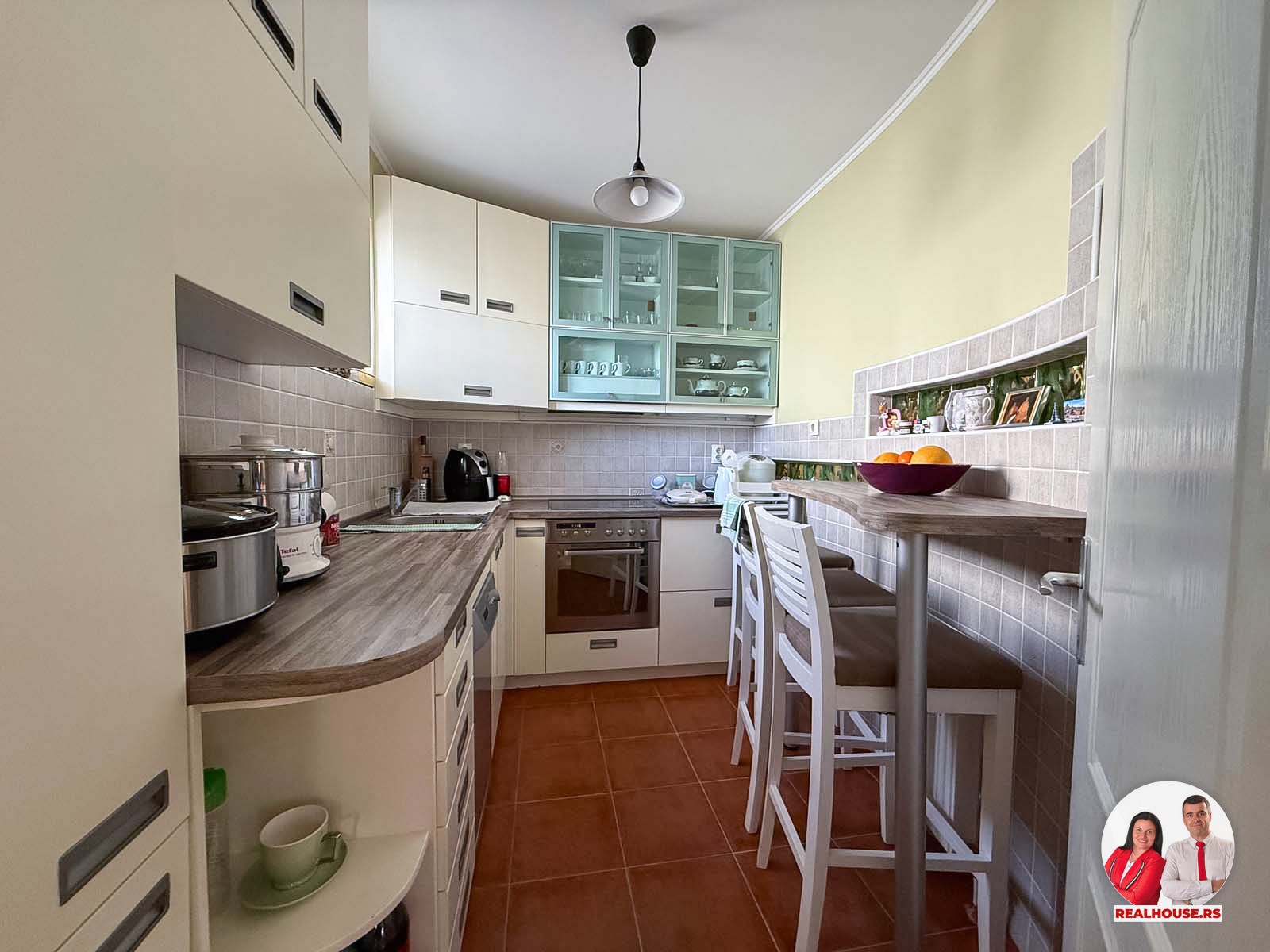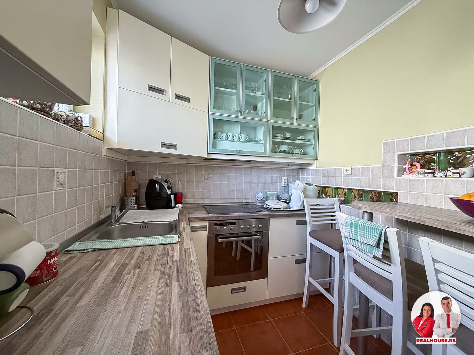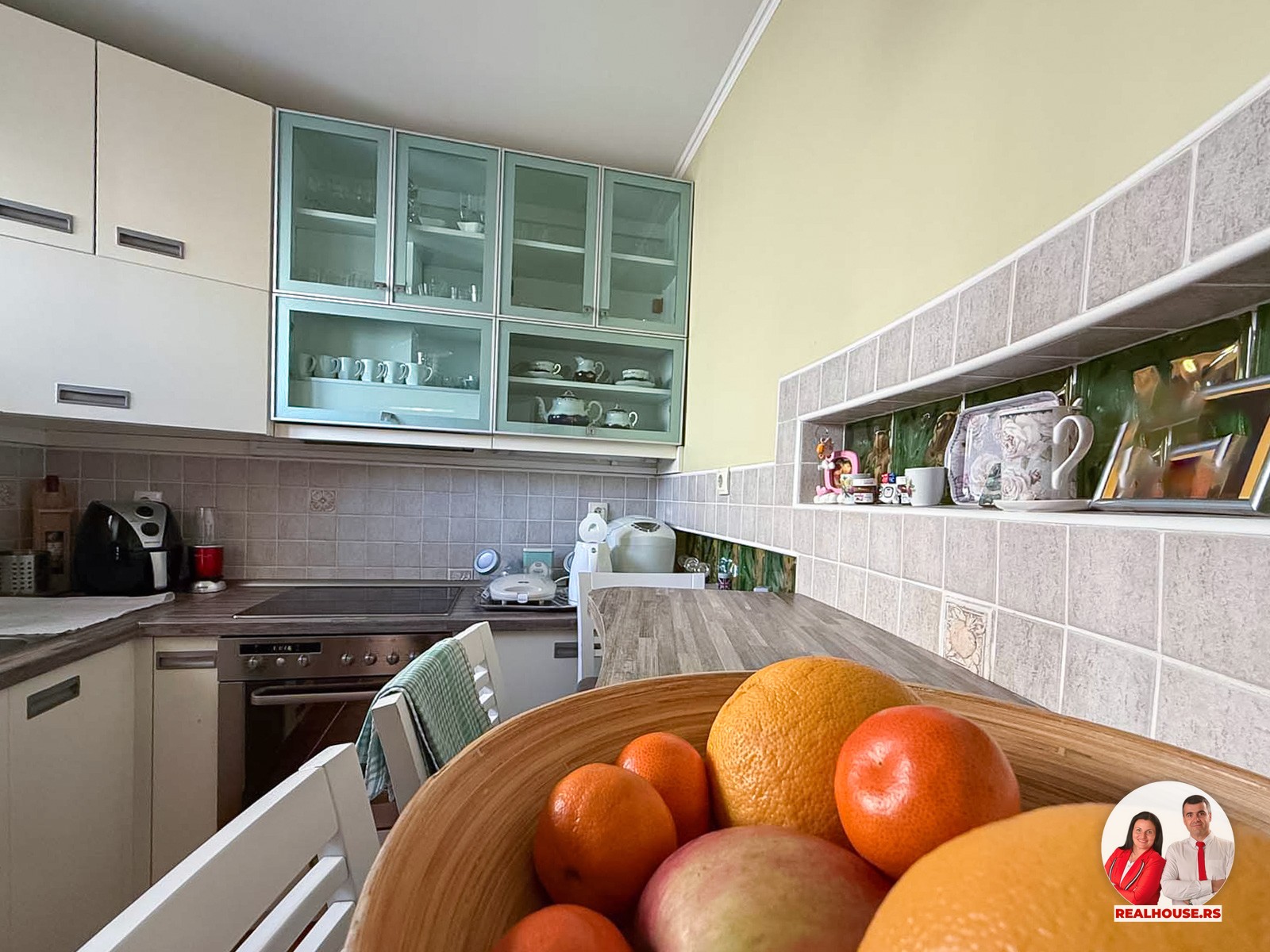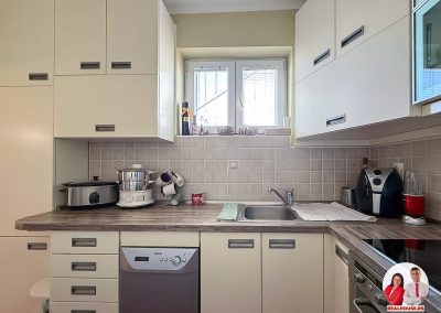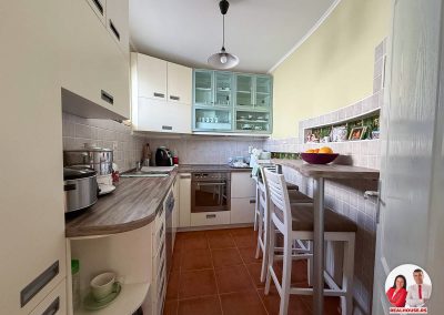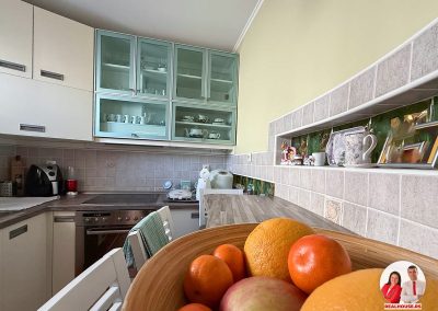 Uređena je u modernom, svetlom tonu, sa dovoljno radne površine i mesta za odlaganje. To je ona vrsta kuhinje u kojoj se rado provodi vreme – gde možete mirno pripremati obroke za porodicu, isprobavati nove recepte ili jednostavno uživati u svakodnevnom kuvanju. Prostor je svetao, organizovan i veoma prijatan, a opet dovoljno izdvojen da zadrži svoju funkciju.