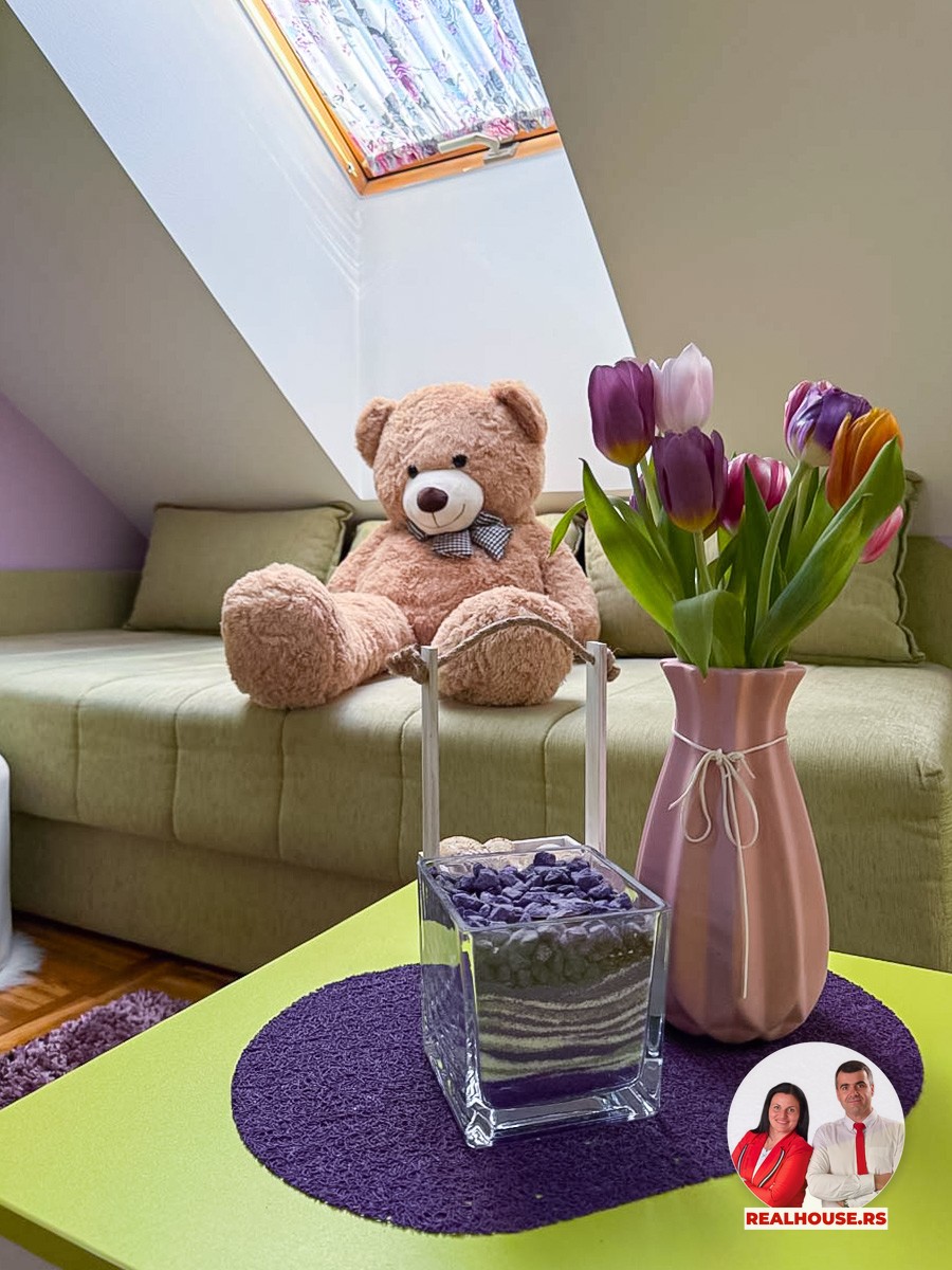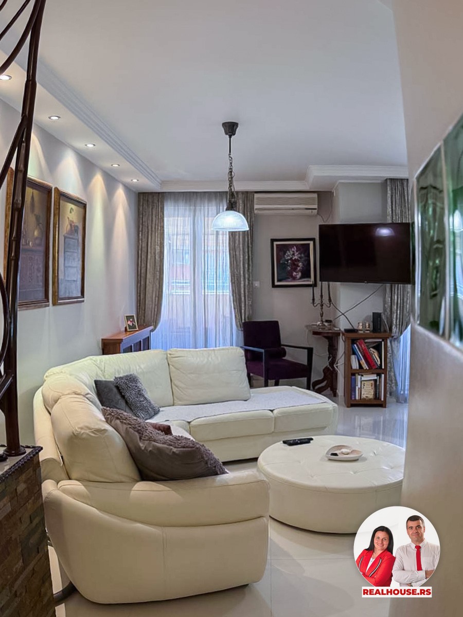 Stan koji Vam predstavljamo ima uknjiženih 92 m² po strukturi je troiposoban i nalazi se na trećem spratu manje, lepo održavane stambene zgrade. Ono što ga čini posebnim jeste činjenica da je organizovan u dve etaže, što prostoru daje potpuno drugačiji karakter u odnosu na klasične stanove.
