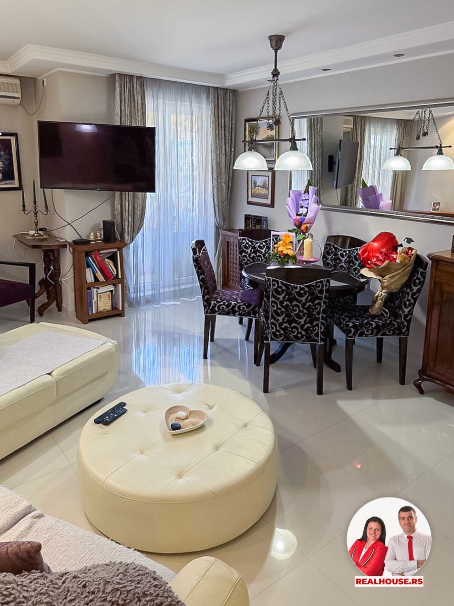 Sam stan je veoma lepo održavan i u odličnom stanju, a prodaje se kompletno opremljen kvalitetnim nameštajem i belom tehnikom koja ostaje u stanu. Za buduće kupce to znači da dobijaju gotov, uređen prostor bez dodatnih ulaganja – stan u koji se možete praktično odmah useliti i početi da živite.