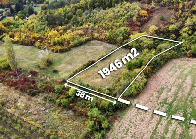 Parcela je pravougaonog oblika, površine 1.946 m², potpuno ravna i maksimalno iskoristiva.