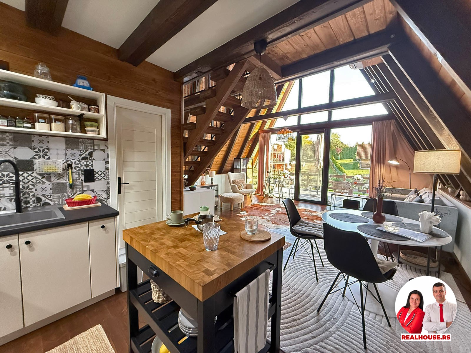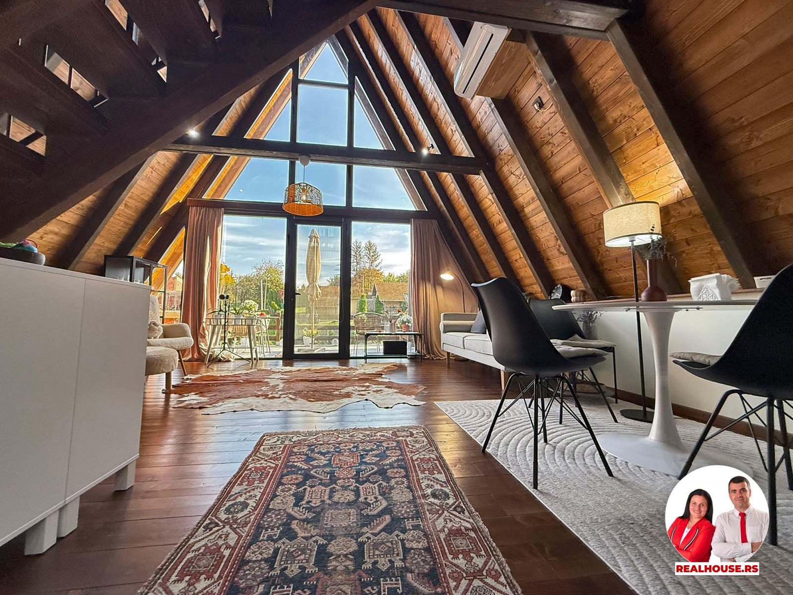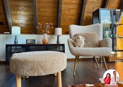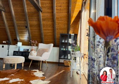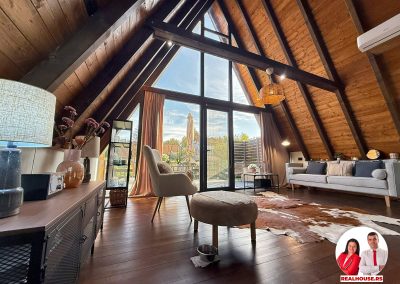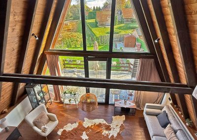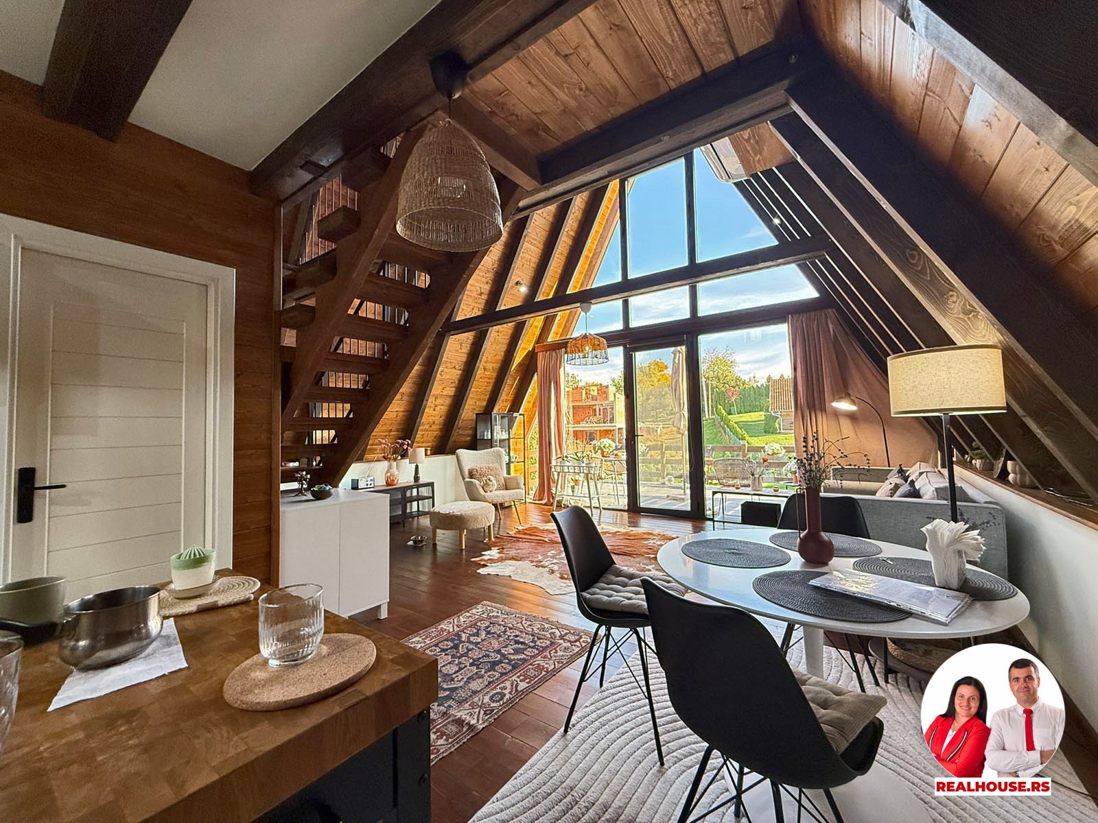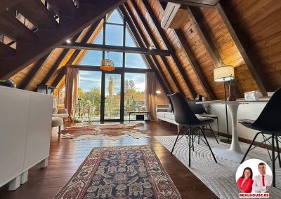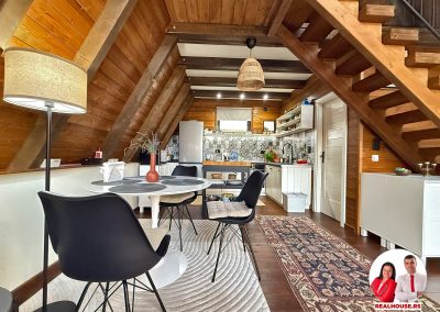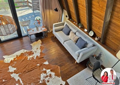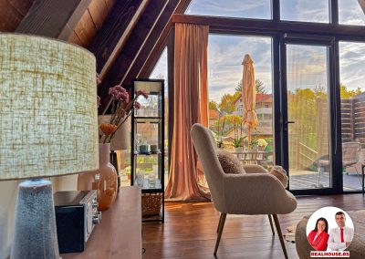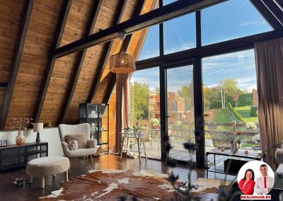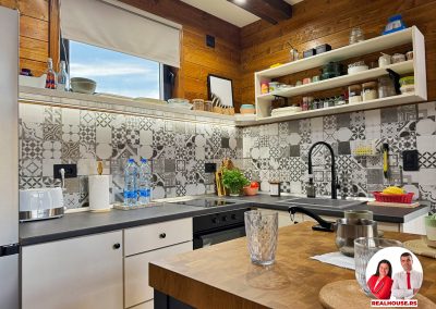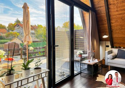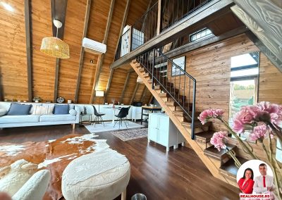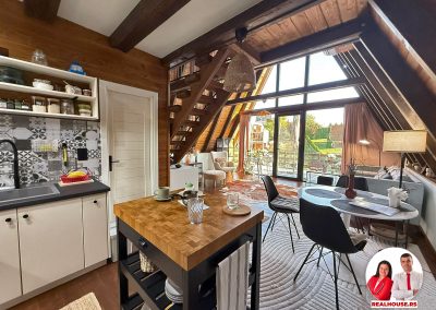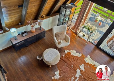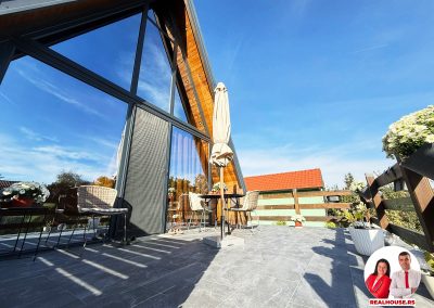 Drvo naravno dominira i ono mu daje toplinu a velike staklene površine celom ambijentu daju posebnu notu zbog povezanosti sa spoljašnjom sredinom pa prostor deluje prozračno i prijatno. U svakom uglu se vidi koliko se vodilo računa o detaljima a svaki kutak ove kuće Vas mami da stanete, pogledate i uživate.
