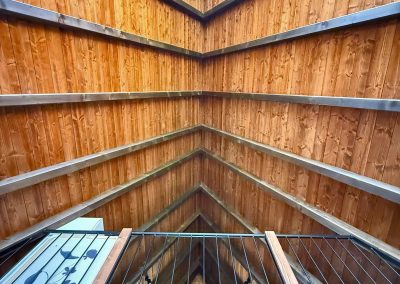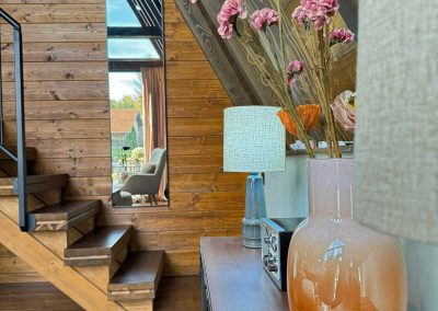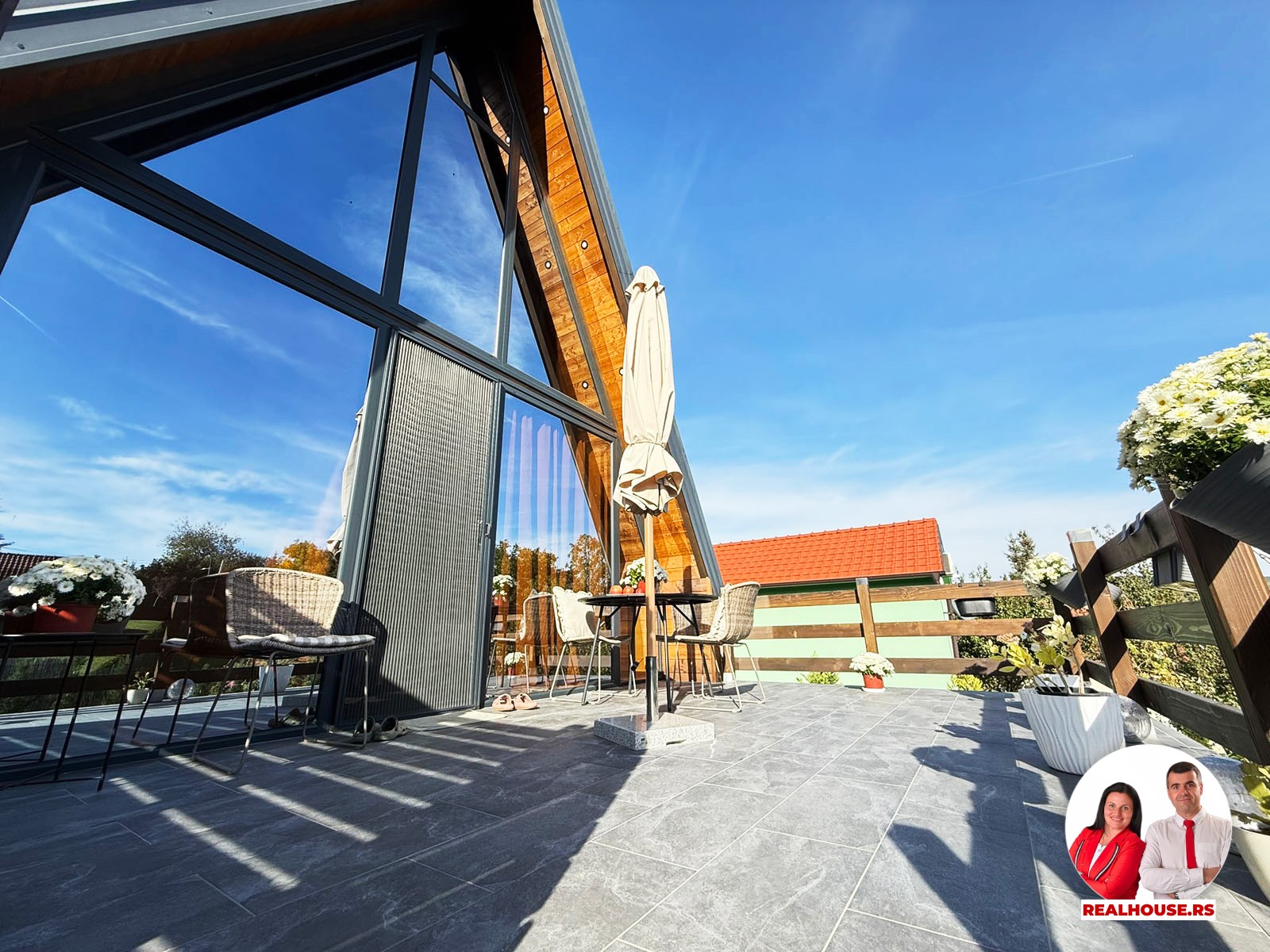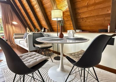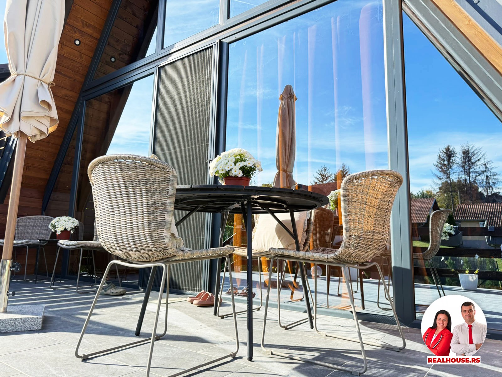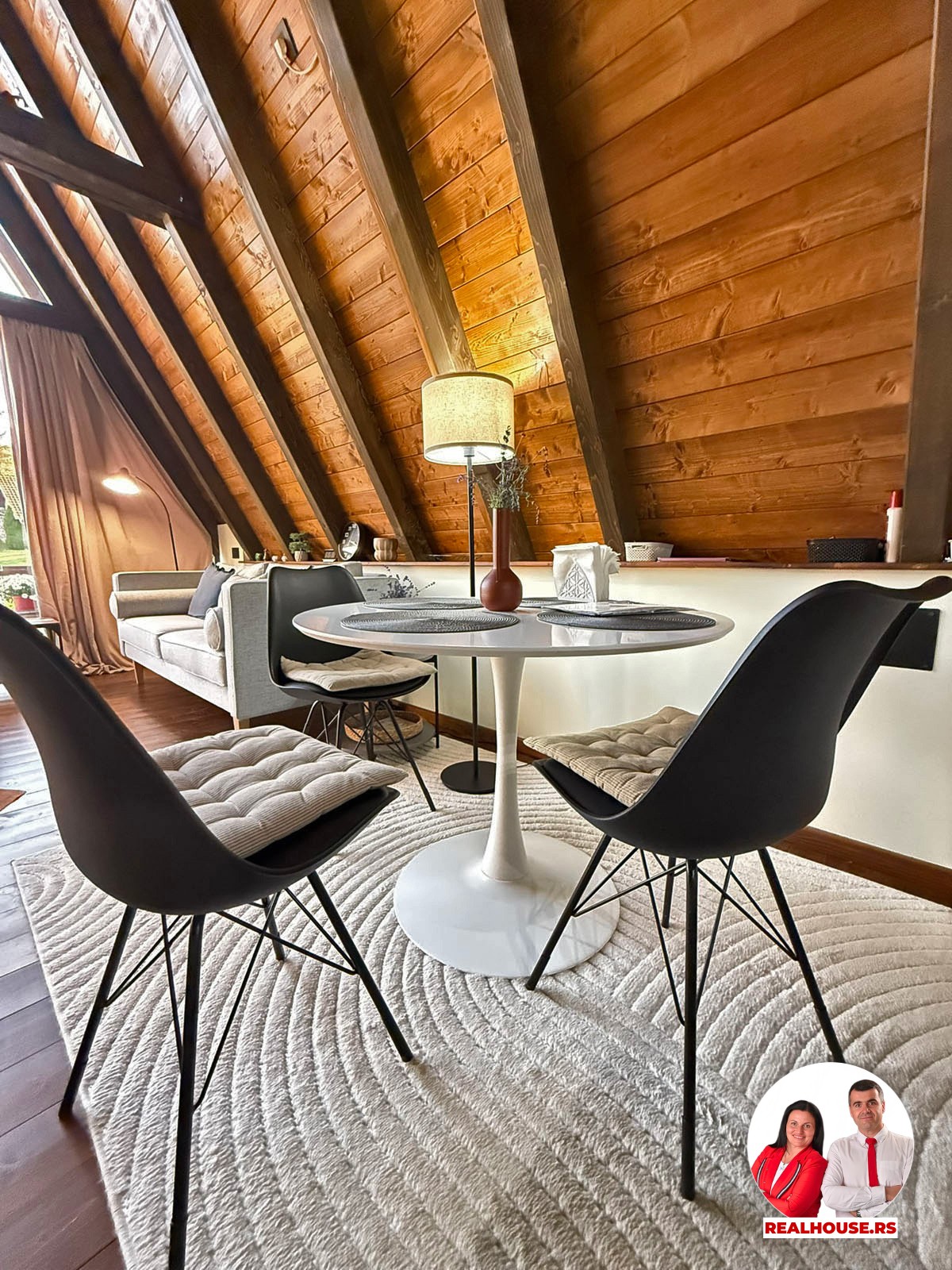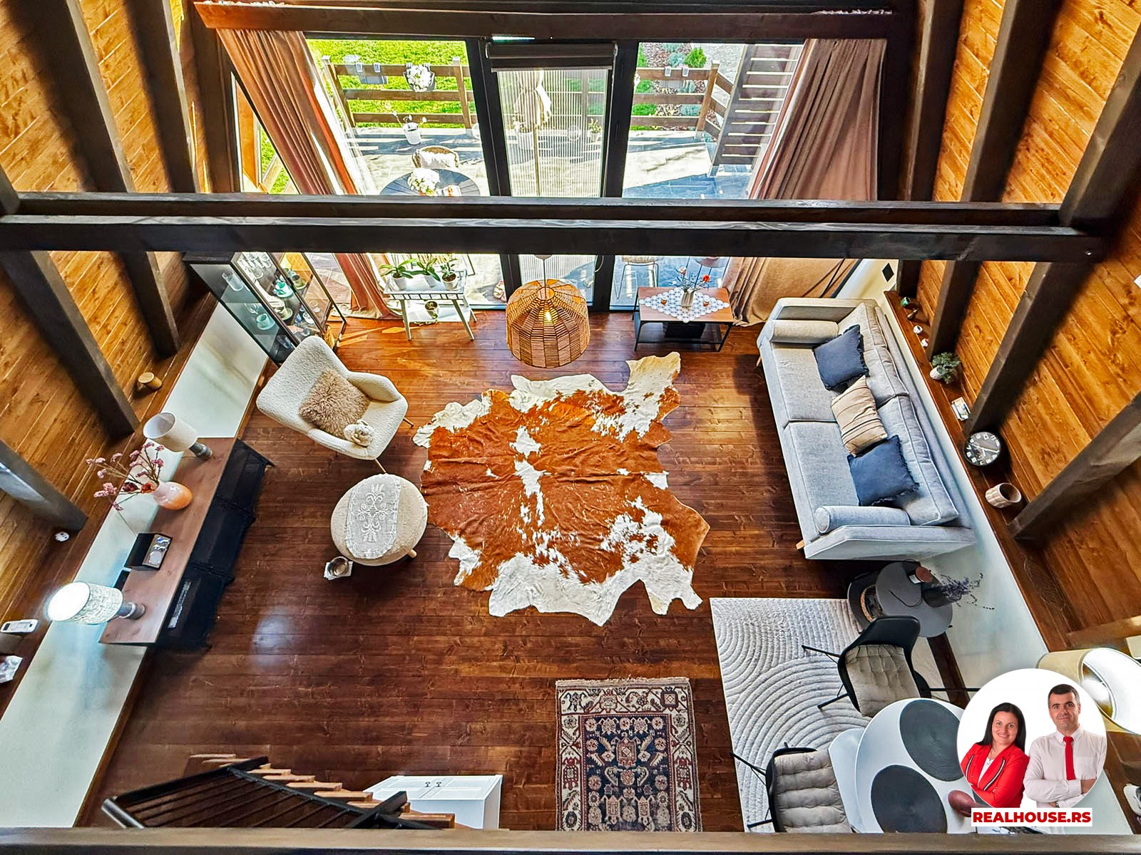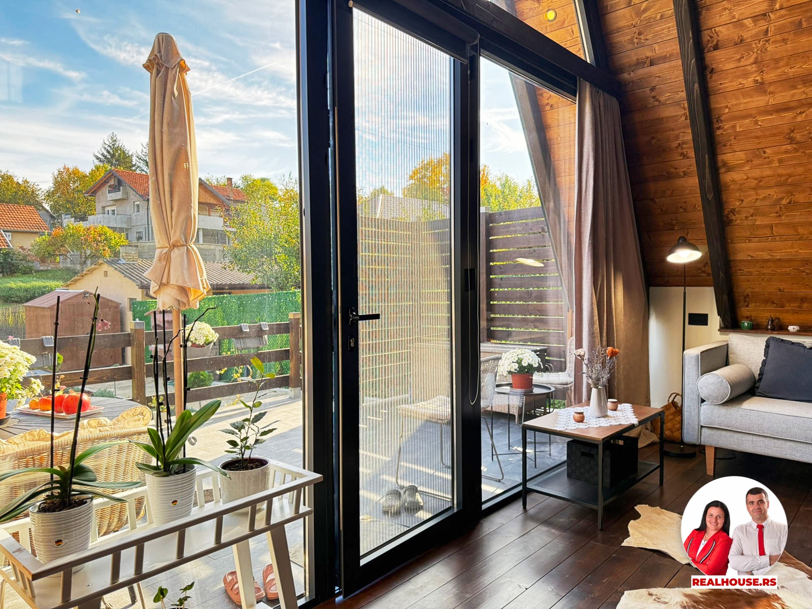 Drvo naravno dominira i ono mu daje toplinu a velike staklene površine celom ambijentu daju posebnu notu zbog povezanosti sa spoljašnjom sredinom pa prostor deluje prozračno i prijatno. U svakom uglu se vidi koliko se vodilo računa o detaljima a svaki kutak ove kuće Vas mami da stanete, pogledate i uživate.