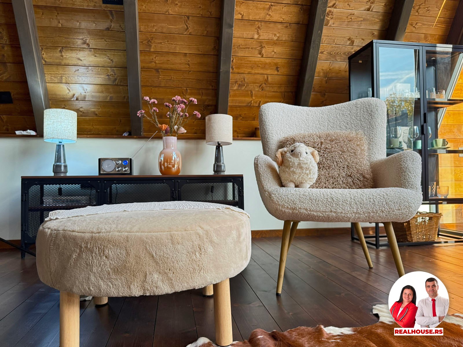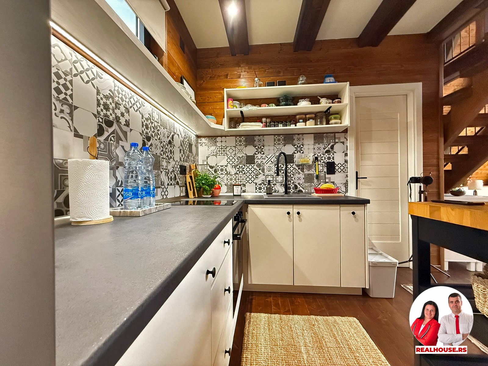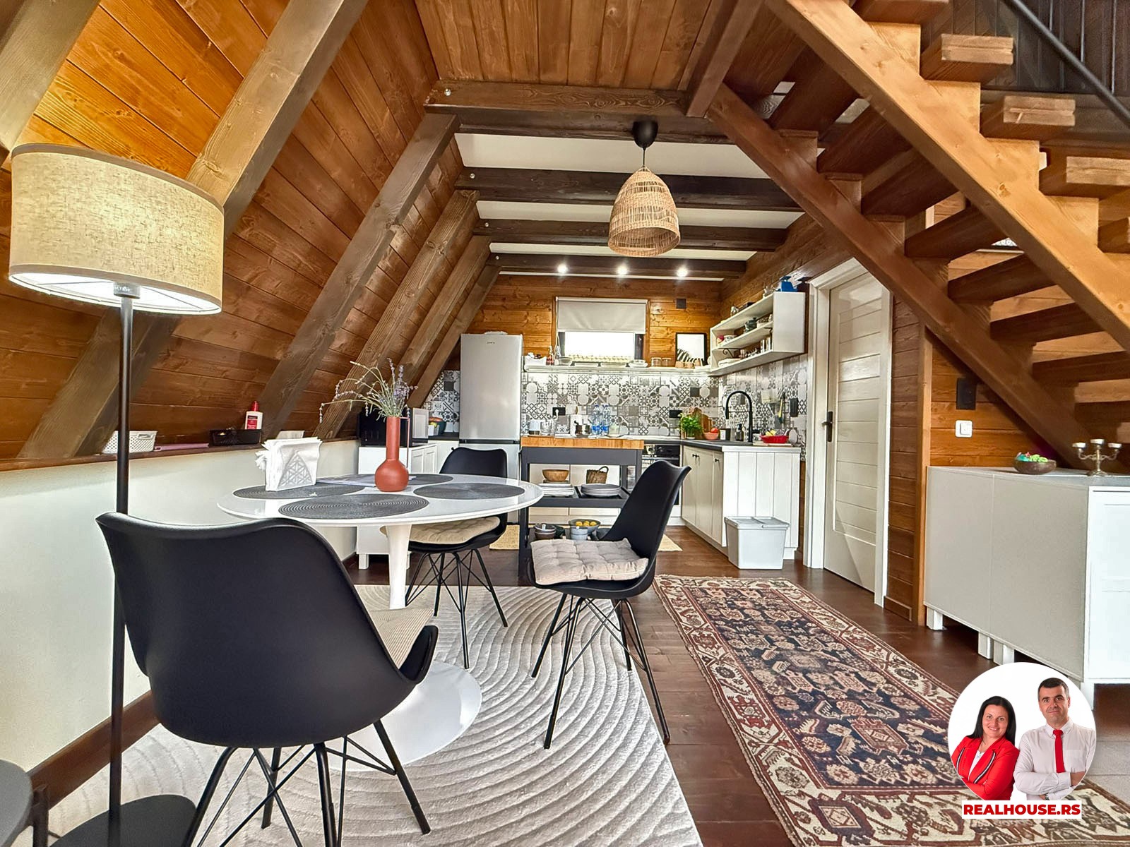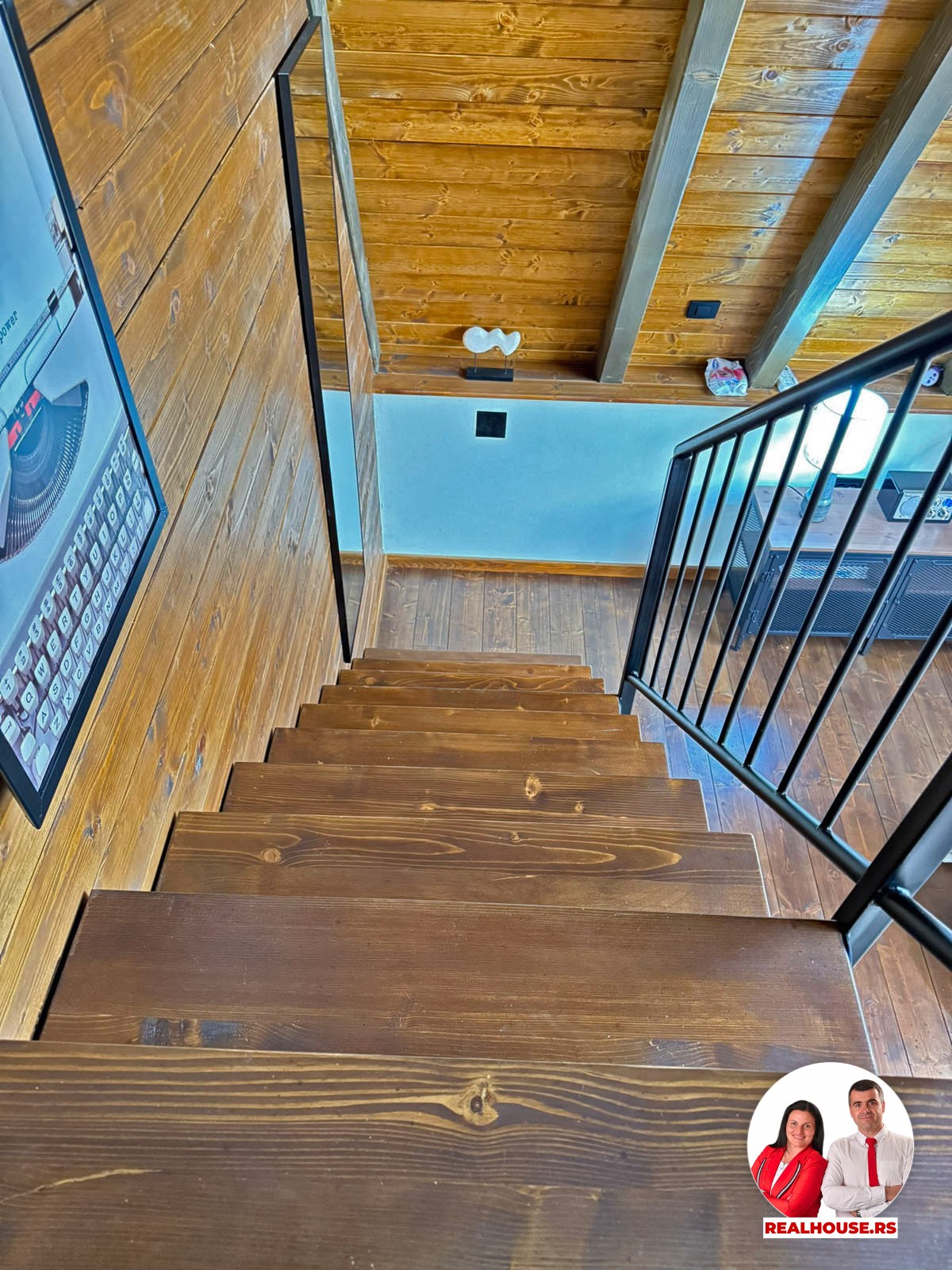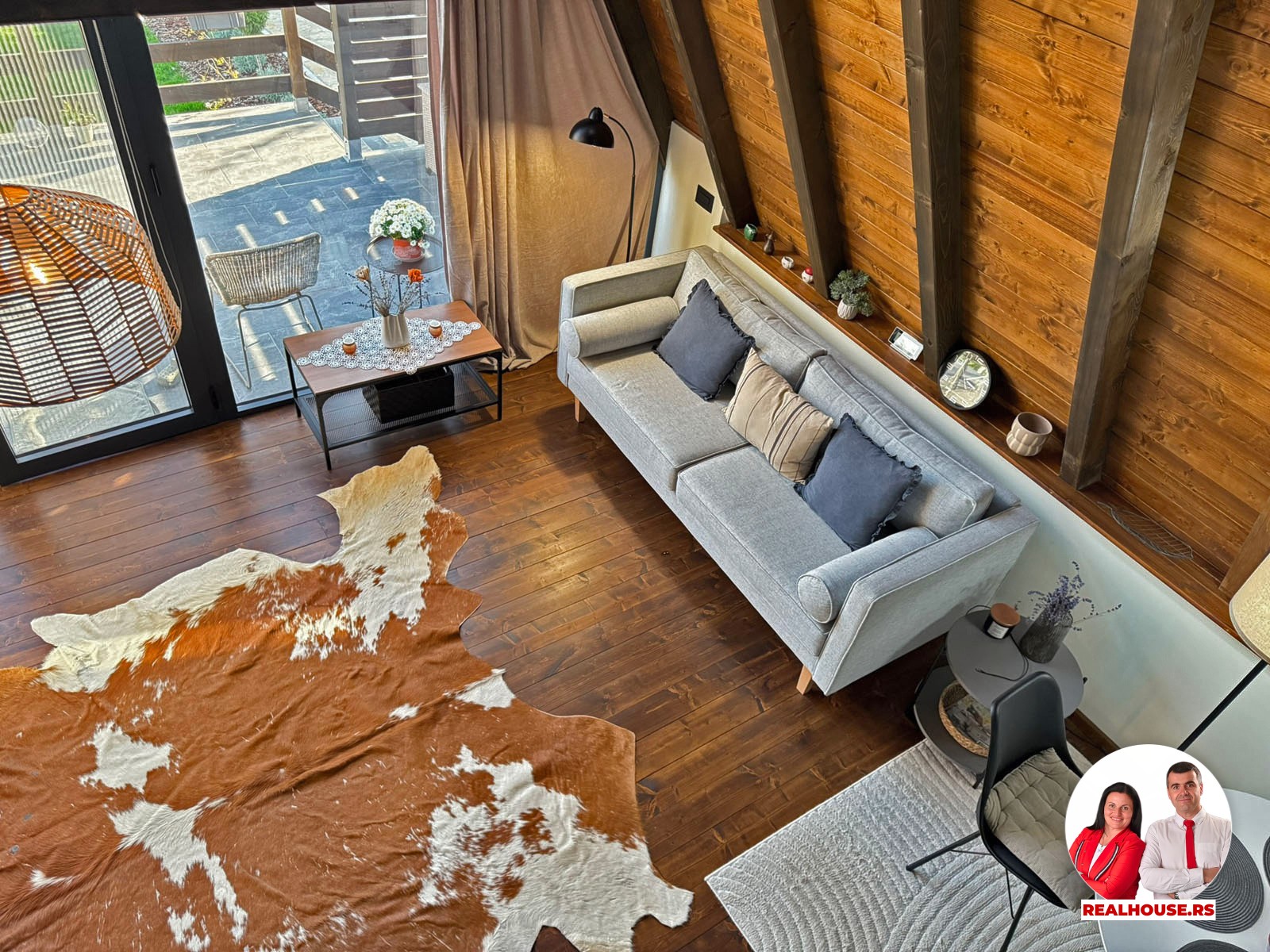 Ova kuća je potpuno nova, tek završena i čim smo kročili unutra shvatili smo da je svaki detalj brižljivo biran ne po modi nego po osećaju. Brvnara je neto površine površine 89 m2 i sastoji se od dnevnog boravka sa kuhinjom i terpezarijom po principu otvorenog koncepta, kupatila i terase na donjoj etaži a tu je i galerija na kojoj je smeštena spavaća soba i dokoje vode drvene stepenice.