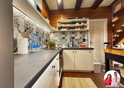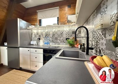 Kuhinja je moderna i savršeno se uklopila zbog kvalitetnog materijala i pažljivo odabrane boje. Praktična je , pregledna i dizajnirana tako da sve bude na dohvat ruke i da se sa uživanjem spremaju obroci.