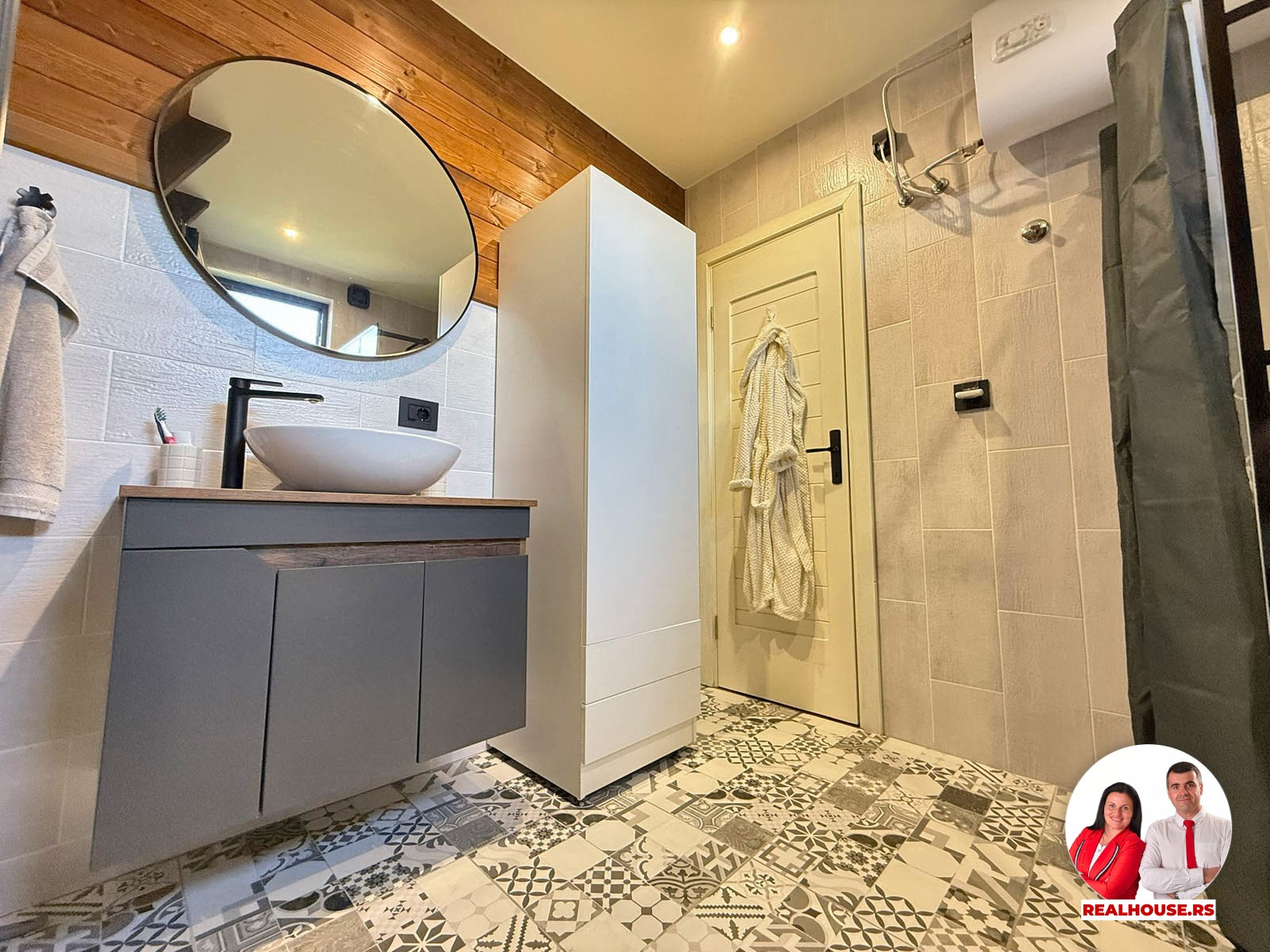 Kupatilo- vrlo moderno sa tuš kabinom kao spoj jednostavnosti i toplih detalja i odlično se uklopilo sa ostatkom kuće.