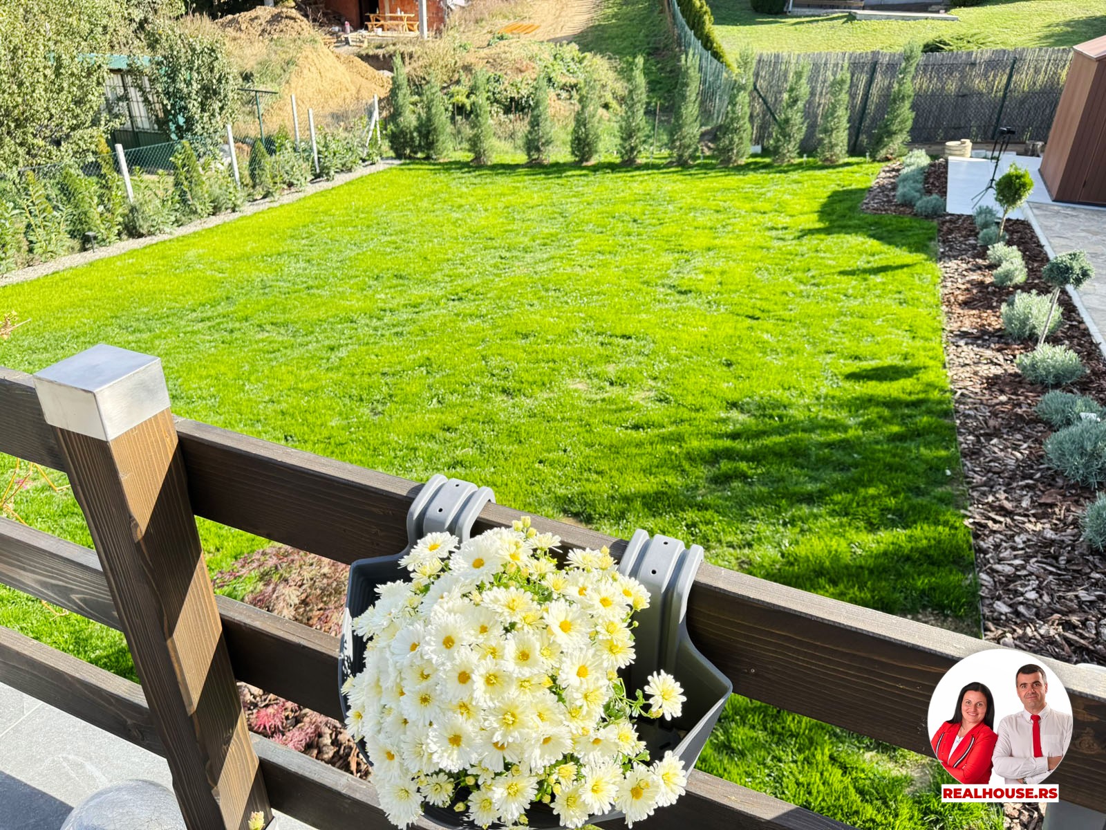 Površina dvorišta od 501 m2 je i više nego dovoljna i pravi je primer koliko pažnje i ljubavi može da stane u ovako jedan otvoren prostor. Kompletno ogradjeno sa postavljenom kapijom, posadjenom travom i drugim ukrasnim biljkama i drvećem kao i tujama koje tek treba da dostignu svoju očekivanu visinu. Dvorište je dovoljno veliko da se u njemu uživa a opet taman da ostane lako za održavanje.